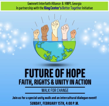 Our mission is to create a harmonious community by encouraging dialogue and collaboration among different faiths, promoting mutual respect, and enhancing the understanding of diverse beliefs in Gwinnett County.